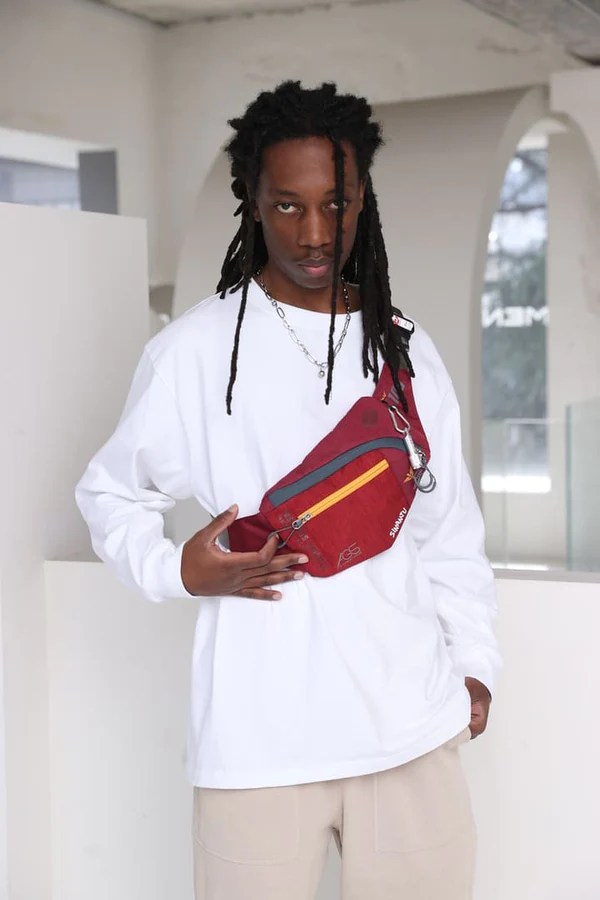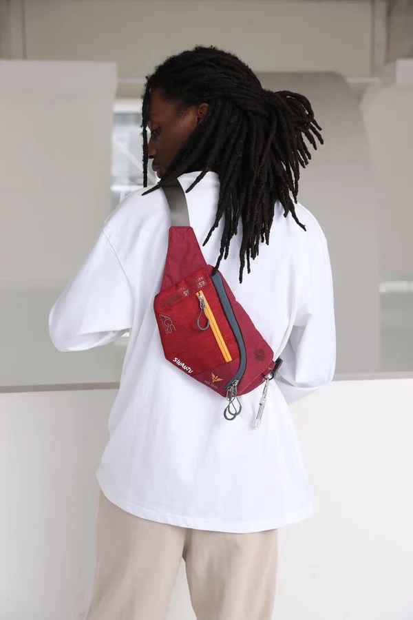 The MSN-06S SINANJU Gundam Waist Bag depicted printing patterns of serial numbers, names and badges over the outlook.