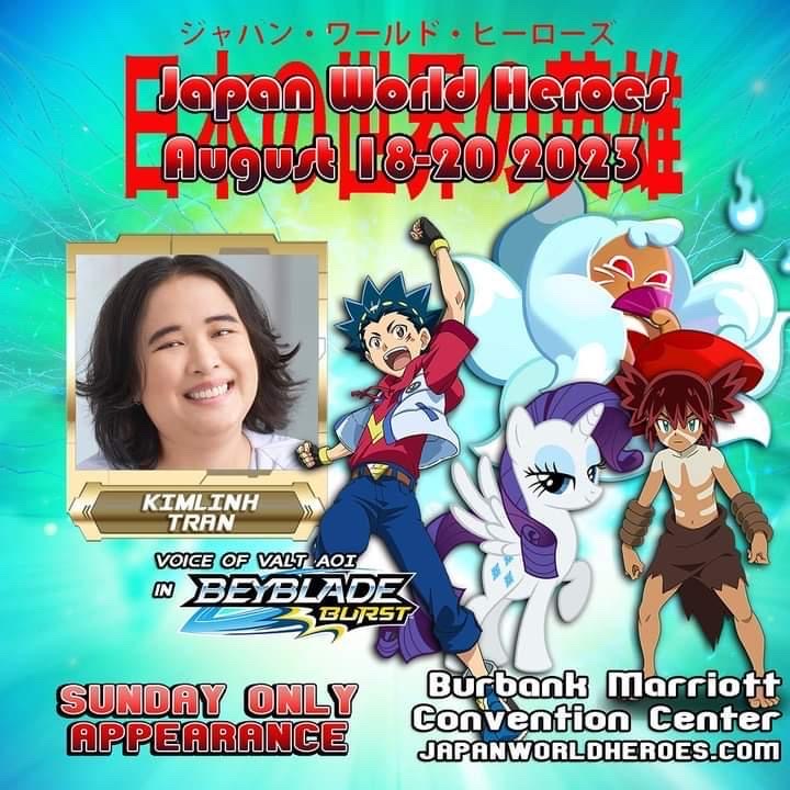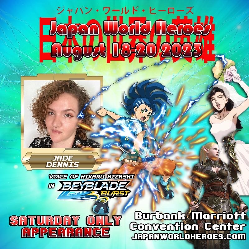 In addtion to all the amazing guests we have coming to Japan World Heroes, we will also have a corner dedicated to the current Beyblade series Beyblade Burst. The cast we will have at the event will be Darrel J Delfin, Jade Dennis, Alan Lee, Brandon Winckler, Kimlinh Tran, and Brittany C Cox. They are all talented Voice actors in multiple other animes and we will be having Beyblade tournaments Saturday and Sunday at the event.