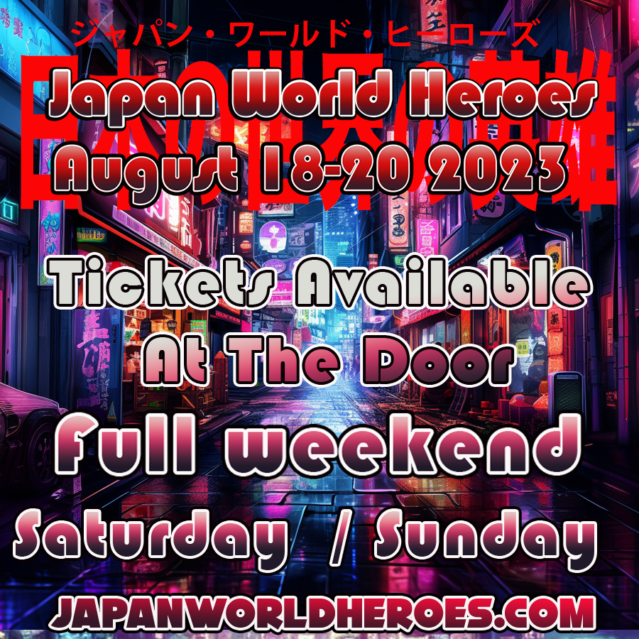 August 16, 2023August 16, 2023 Scott Zillner Japan World Heroes Tickets Available at the door Missed out on the pre sales no worries. You can still get in the event at the door. Friday is only available with a full weekend pass $70 Saturday $50 Sunday $30 Share this: Click to share on X (Opens in new window) X Click to share on Facebook (Opens in new window) Facebook Like Loading... Related
