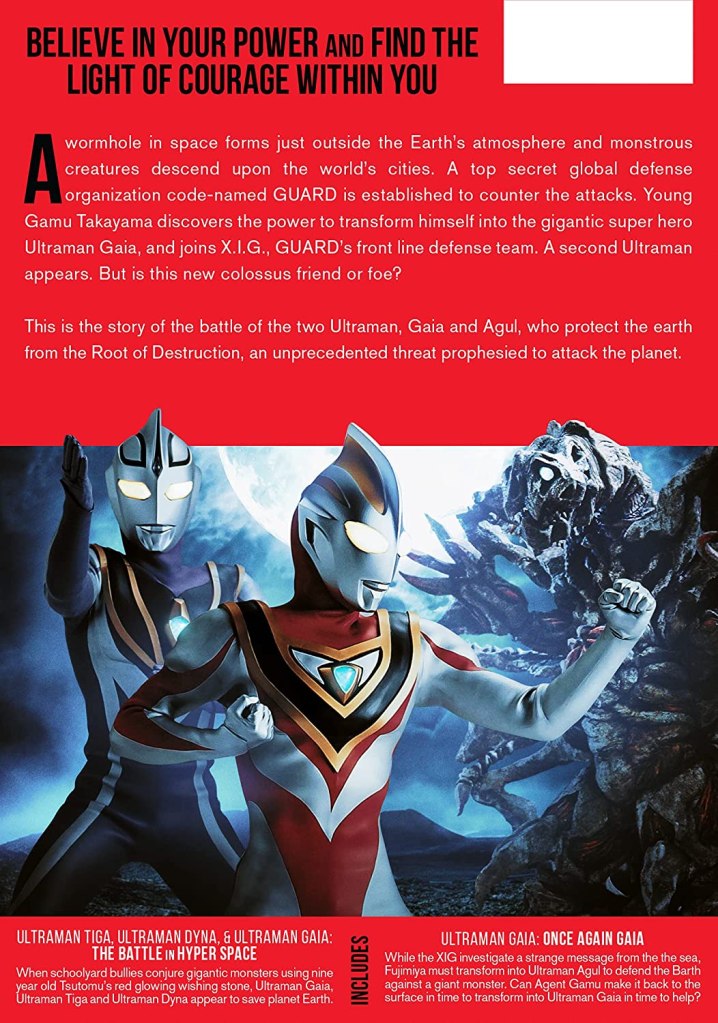 A wormhole in space forms just outside the Earth’s atmosphere and monstrous creatures descend upon the world’s cities. A top-secret global defense organization code-named GUARD is established to counter the attacks. Young GAM TAKAYAMA discovers the power to transform himself into the gigantic superhero ULTRAMAN GAIA, and joins X.I.G., GUARD’s front line defense team. A second Ultraman appears. But is this new colossus friend or foe?